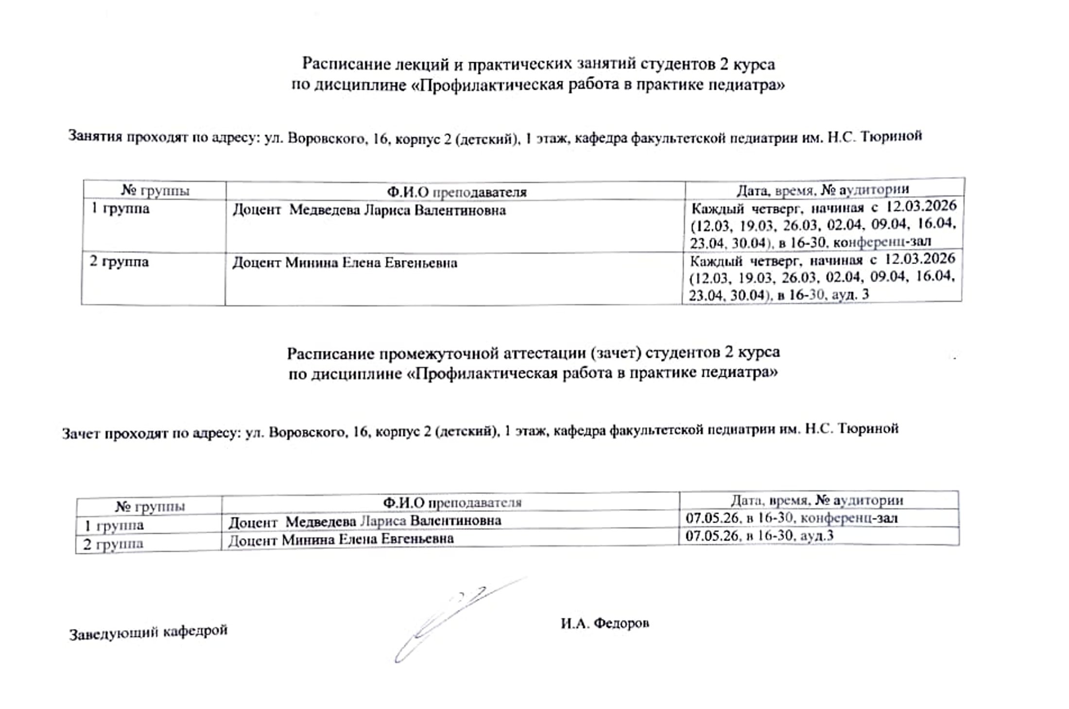 - Расписание промежуточной аттестации